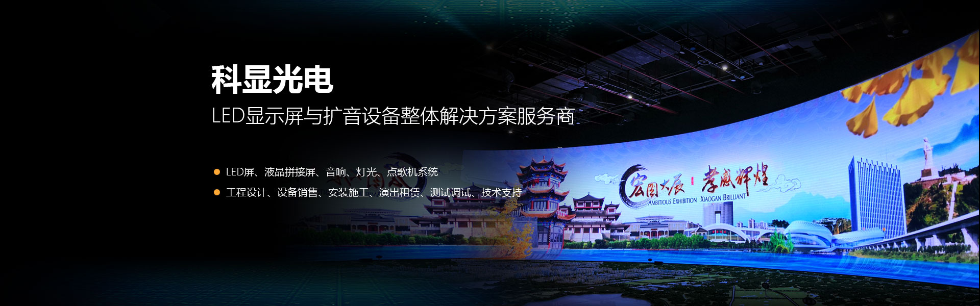 武漢科顯光電有限公司是一家集工程設(shè)計(jì)、設(shè)備銷售、安裝施工、演出租賃、測(cè)試調(diào)試、技術(shù)支持等多元化服務(wù)為一體的專業(yè)LED屏、液晶拼接屏、音響、燈光、點(diǎn)歌機(jī)系統(tǒng)集成服務(wù)商。在市政、交通運(yùn)輸、銀行證券、體育場(chǎng)館、商場(chǎng)、機(jī)場(chǎng)、車站、港口、醫(yī)院、院校、教育系統(tǒng)、工商、稅務(wù)、KTV等領(lǐng)域得到廣泛應(yīng)用。...